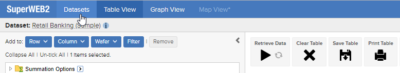 Once you have opened a dataset, SuperWEB2 displays the Table View, where you can build and modify tables.