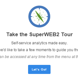 This shows you some of SuperWEB2's key features and explains how to open a dataset and build a table. If you want to view the tour again in the future, you can access it by selecting the Tour option from the menu in the top-right: