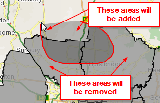 When you click one of the buttons, the map changes to "Edit Mode". In this mode, all the areas currently included in the map visualisation are highlighted in a single colour: