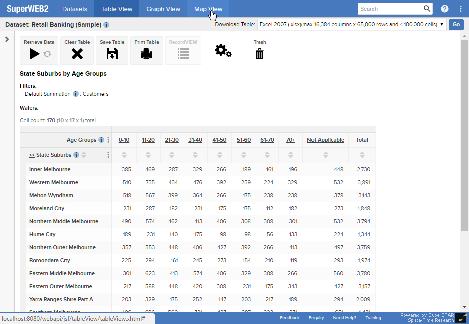 You can also modify the areas that are visualised on the map by switching back to Table View and modifying the table, then returning to Map View.