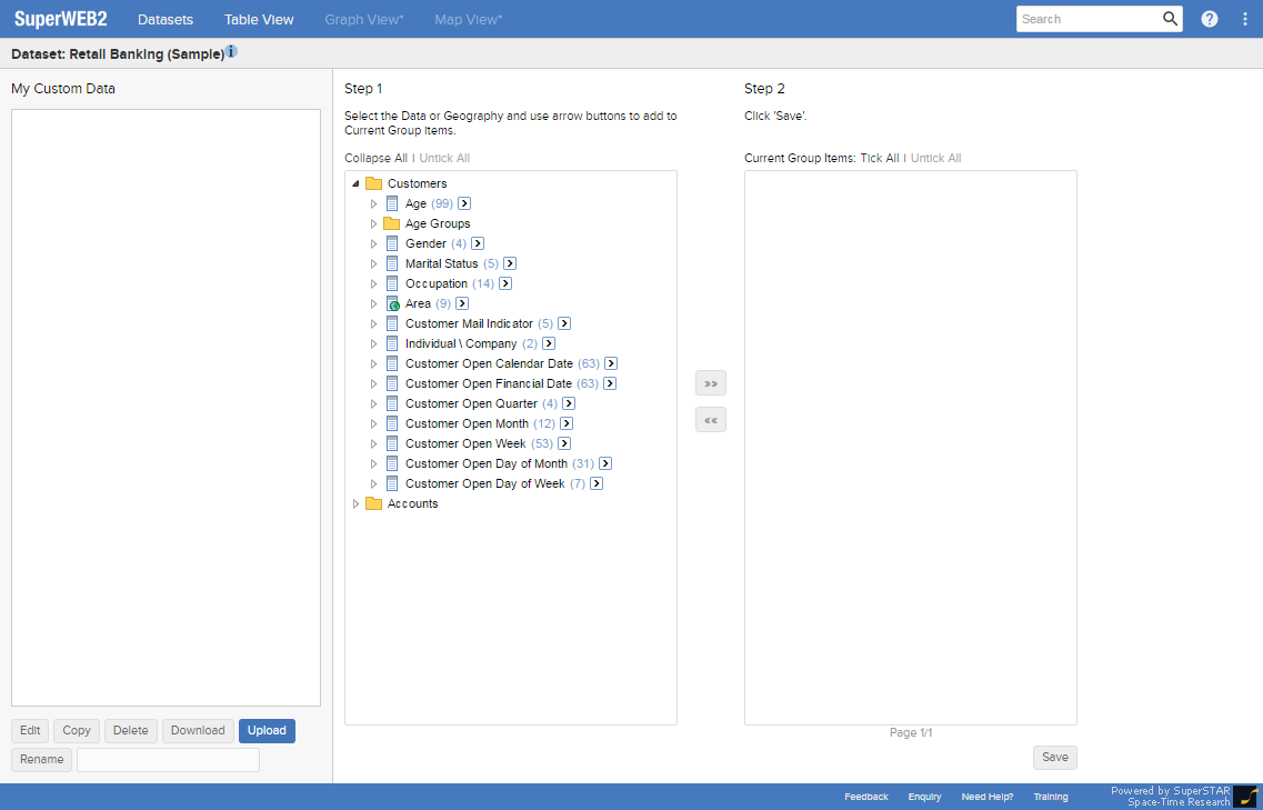 Once you have created a custom group, you can use it in your tables. Your custom groups will be saved on the server and you can access them again the next time you use SuperWEB2. You can also download/save your groups to a file, which you can share with other SuperWEB2 users.