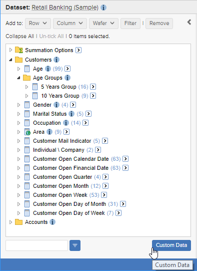 To access this feature, click the Custom Data button at the bottom of the list of fields: